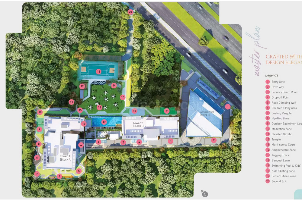 Spread across approximately 2.44 acres, the project features well-planned residential towers with around 242 thoughtfully designed apartments. Each home is crafted to ensure ample natural light, ventilation, and optimal space utilization, delivering a refined and comfortable lifestyle. The project reflects modern architectural excellence and integrates sustainable practices such as natural landscaping and eco-friendly design principles.